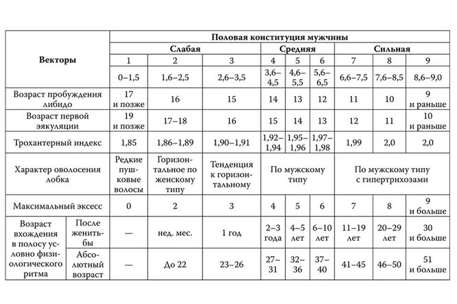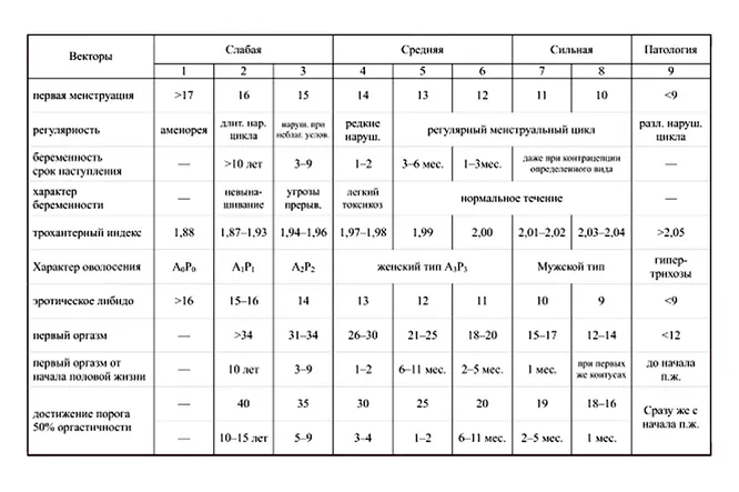 Когда все показатели определены, надо найти их в таблице. В каком из столбцов окажется большинство ваших характеристик, такой тип половой конституции у вас и наблюдается.